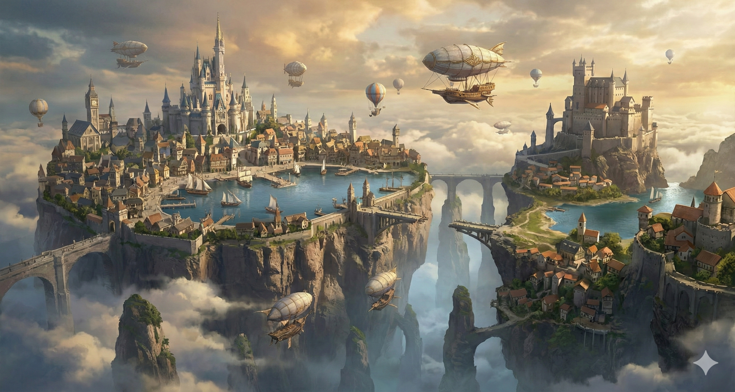 Es gibt Orte, an denen der Wind niemals schweigt. In Aer-Lithos ist das Heulen der „Reißer“ ein ständiger Begleiter, der an den schroffen Felsnadeln zerrt und Luftschiffe wie Spielzeuge in die Tiefe zu drücken droht. Hier riecht es nach Ozon, heißem Metall und dem Staub trockener Erde. Wer hier überleben will, muss sich festhalten – oder eine Maschine bauen, die stärker ist als der Sturm. Es ist der Ort, an dem Menschen das Überleben mit eigenen Händen geschaffen haben.