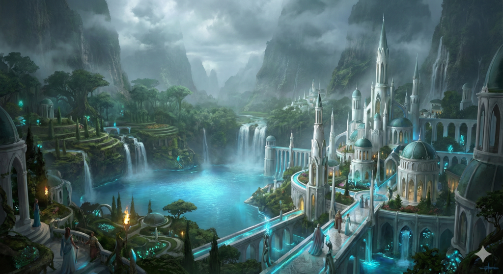 Auf der anderen Seite liegt Fel-Diron, ein erloschener Vulkankrater, der ein tropisches Paradies birgt. Es ist der einzige Ort der Welt mit unendlichem Frischwasser (der Ursprung der Magie) – ein Monopol, das die Stadt unermesslich reich und arrogant gemacht hat. Die Elite lebt hier in weißen Türmen, nutzt Wasser-Magie für jeden Handgriff und hält sich durch die „Stasis“-Wirkung des Wassers ewig jung. Sie haben Technik verlernt, weil Magie bequemer ist.